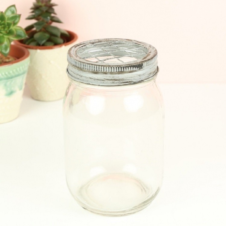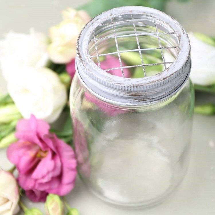 Jarrón Rústico estilo Mason Jar Precioso Jarrón Rústico estilo Mason Jar con el que podrás decorar cualquier rincón de tu hogar. Con tapón de rosca y alambres entrecruzados perfecto para colocar las flores y crear un precioso y original centro de mesa. Medidas: 15cm Alto x 8cm Ancho Productos en la misma categoría