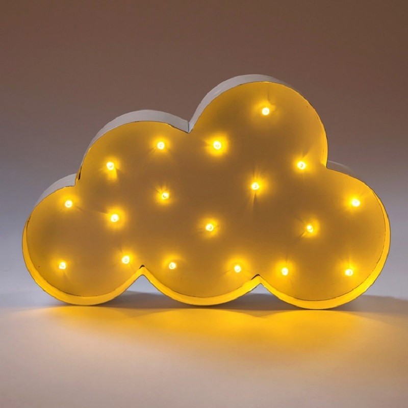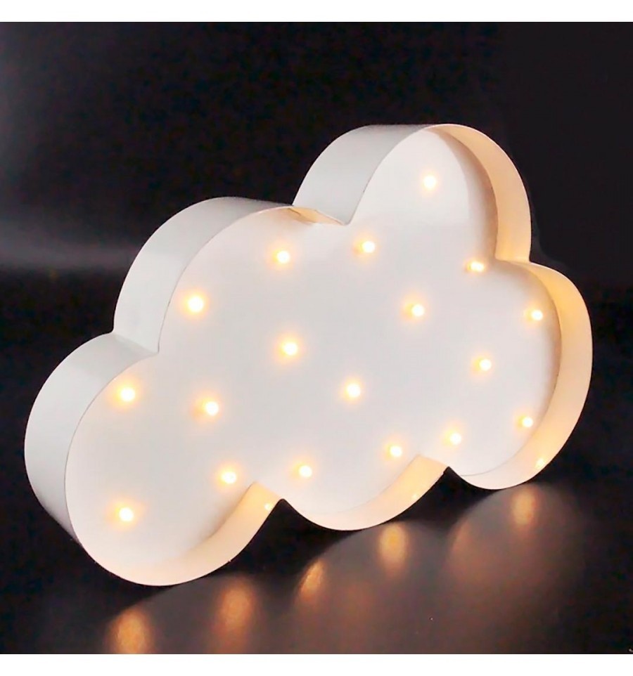 Lámpara Nube Leds Adorable Nube de Metal lacado en Blanco con 18 Puntos de Luz Leds, ideal para decorar cualquier estancia del hogar. Debido a su ancho diseño puedes colocarla directamente sobre cualquier base, incluso colgarla en la pared con los ojales que incorpora en su parte trasera. Funciona con dos pilas AA ( no incluídas ) por lo que podrás utilizarla en cualquier lugar sin necesidad de tener cerca un enchufe. Medidas: 20 x 30 x 5cm Productos en la misma categoría