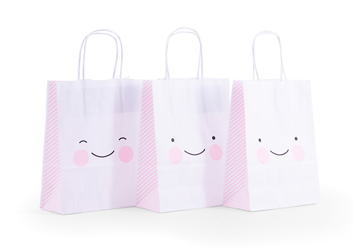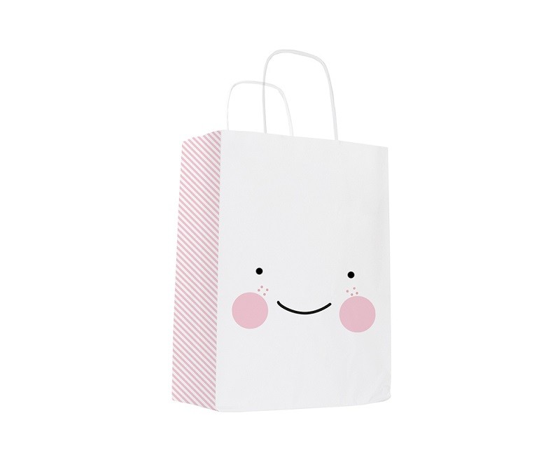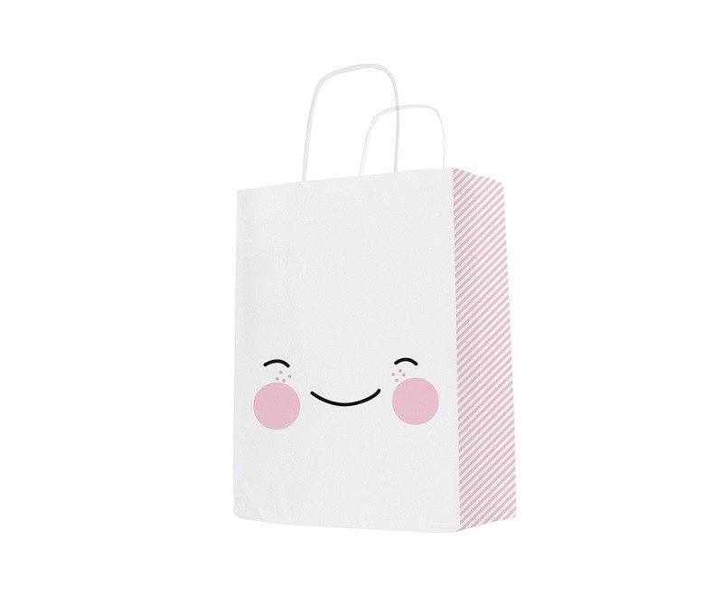 Bolsa de Papel Carita Feliz La Bolsa de Papel más bonita que puedas imaginar!! Estampada en cada una de sus caras con una linda carita y el lateral con rayas en color Rosa. Te encantará regalar en ella, cualquier detalle comprado o incluso preparado handmade con todo tu cariño. Sorprenderás a la persona que lo reciba y estará encantada doblemente. Fabricada en papel resistente de gran calidad y asas retorcidas en color Blanco. Medidas: 18 x 8 x 24cm |