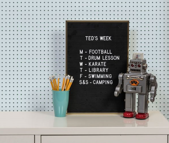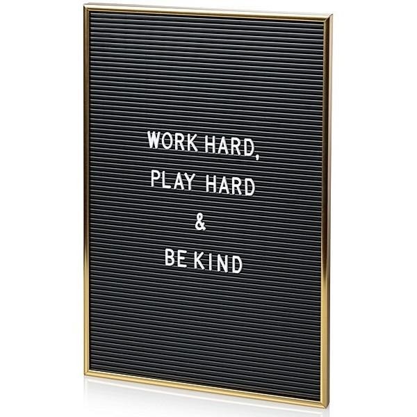 Letter Board No importa si la colocas en tu casa o en tu negocio, porque este panel estilo vintage está pensado para aquellos que quieren dar un toque diferente a "su espacio" personalizarlo a su manera, dando la bienvenida a su hogar, hacer una declaración de amor, detallando el menú de la semana, o simplemente anotando recordatorios y tareas importantes. Es un regalo perfecto que recuerda los carteles de cine, barberías o tiendecitas de barrio detallando precios. Panel negro con marco dorado de 40 x 30cm que puedes complementar con los diferentes sets de letras de colores disponibles. Su parte trasera está diseñada para colgarse en la pared, aunque si lo deseas puedes apoyarla en cualquier mueble e ir cambiándola de espacio según la ocasión.